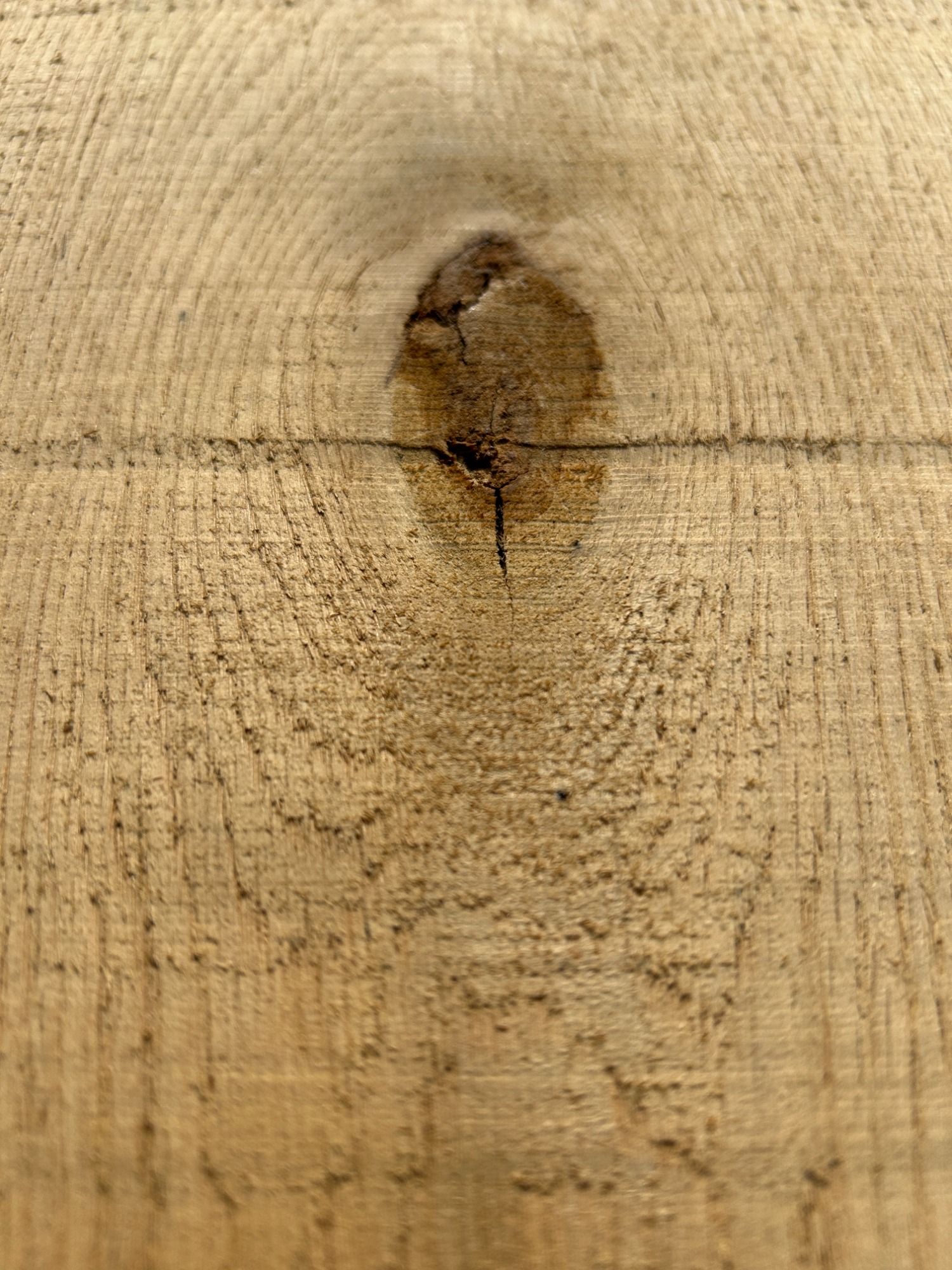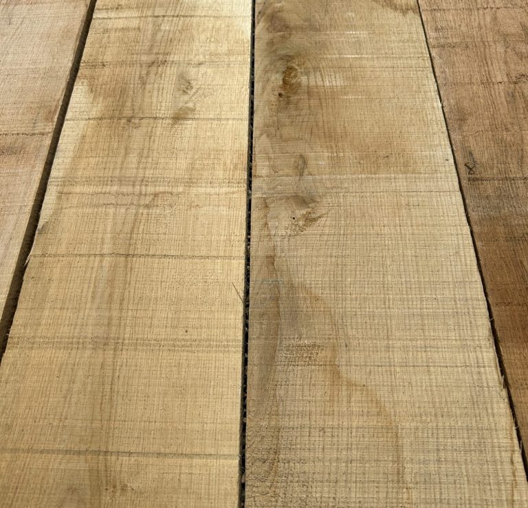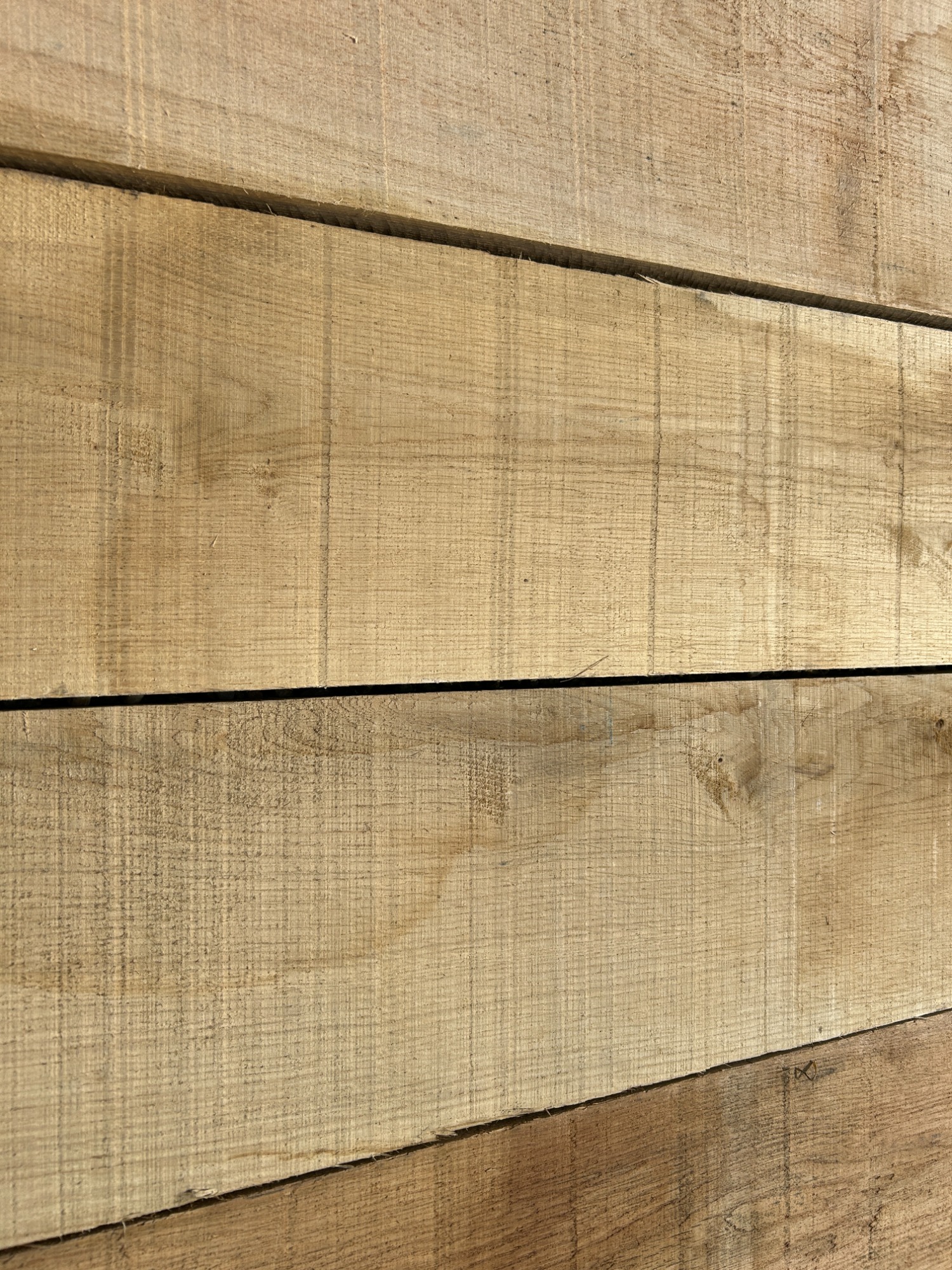 Ruwe, gezagen planken zijn natuurlijk van karakter, de dikte en breedte kunnen iets afwijken en ze zijn niet volledig maatvast.