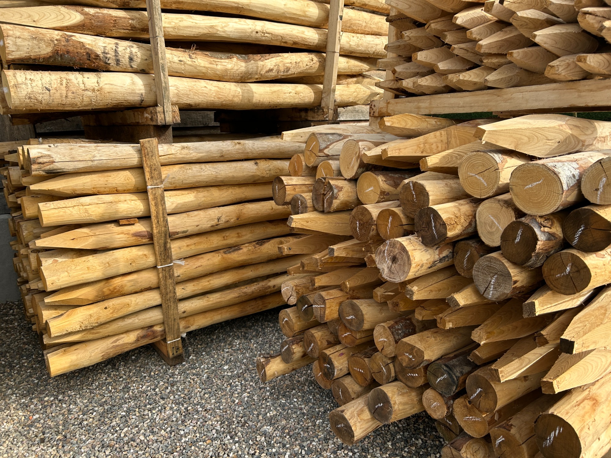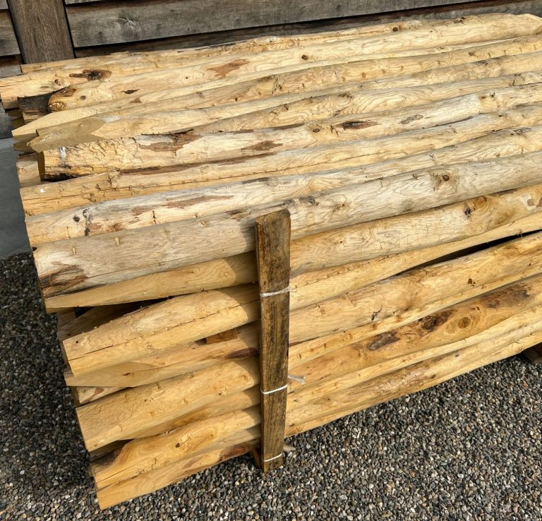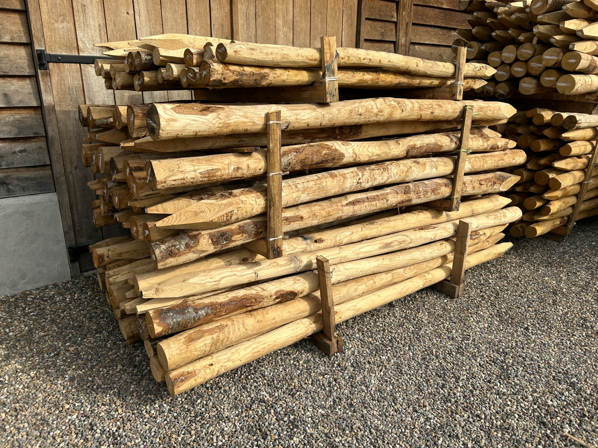 Ronde kastanje palen halfrond gezaagd gepeld en gepunt: