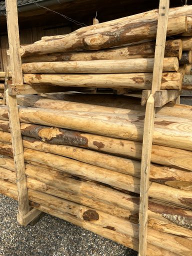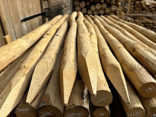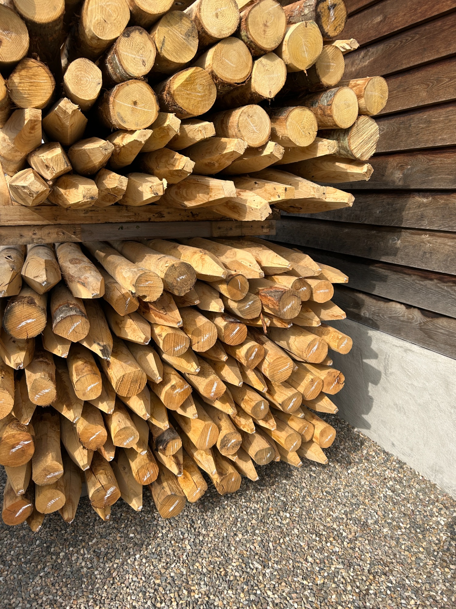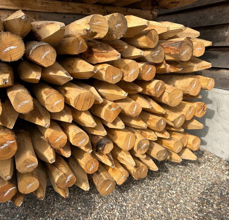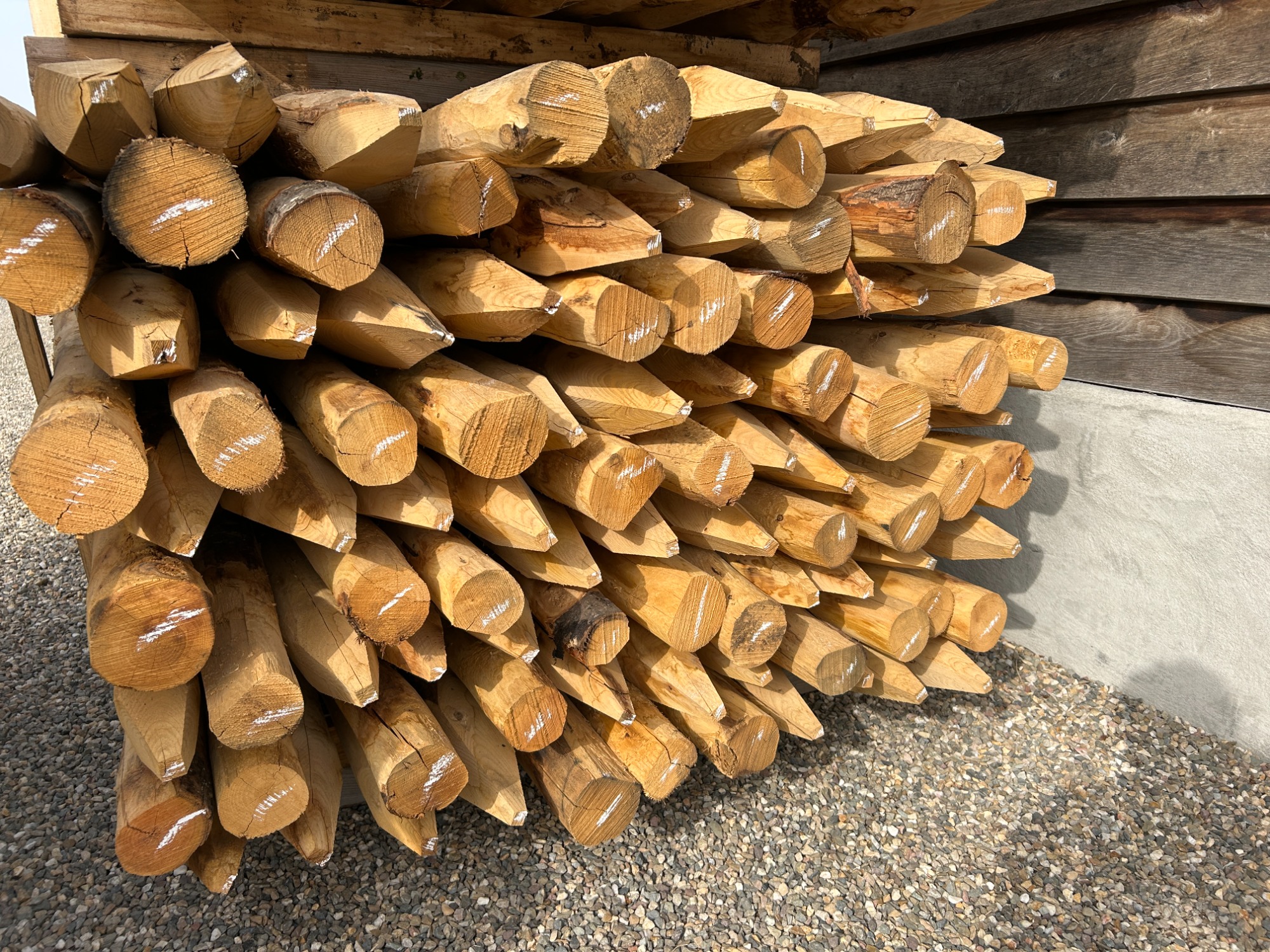 Ronde kastanje palen halfrond gezaagd gepeld en gepunt: