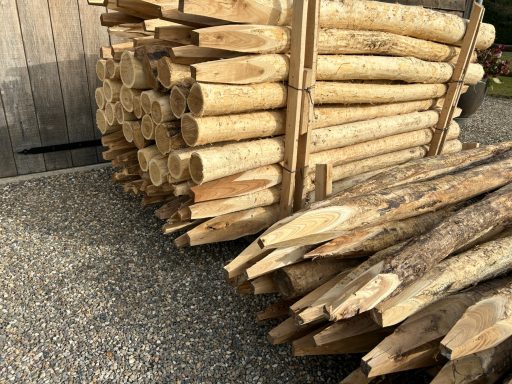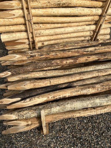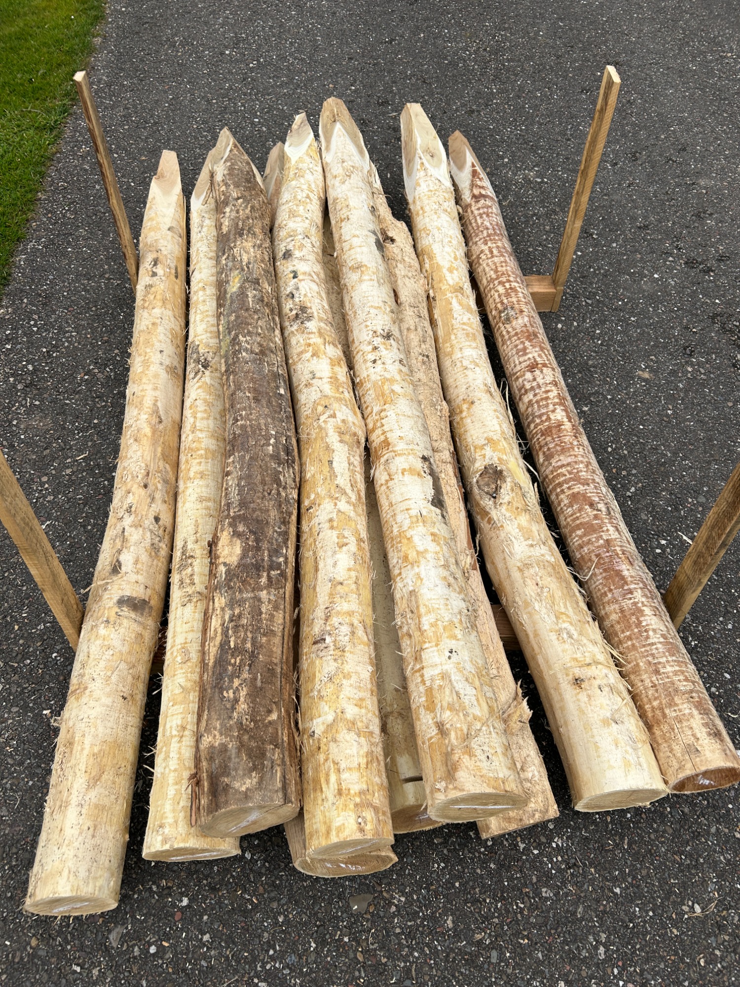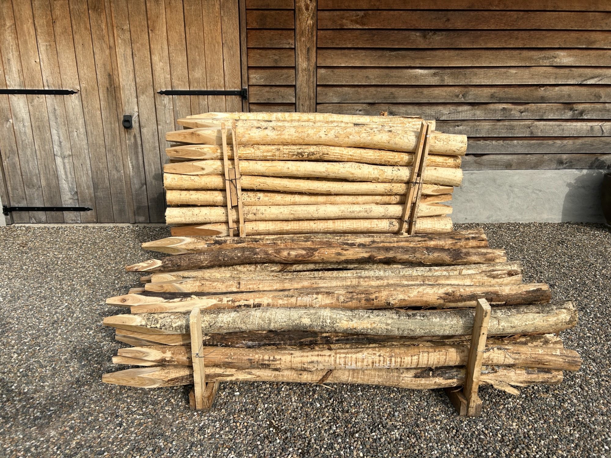 Ronde robinia palen gepeld en gepunt, (hout duurzaamheidsklasse 1)